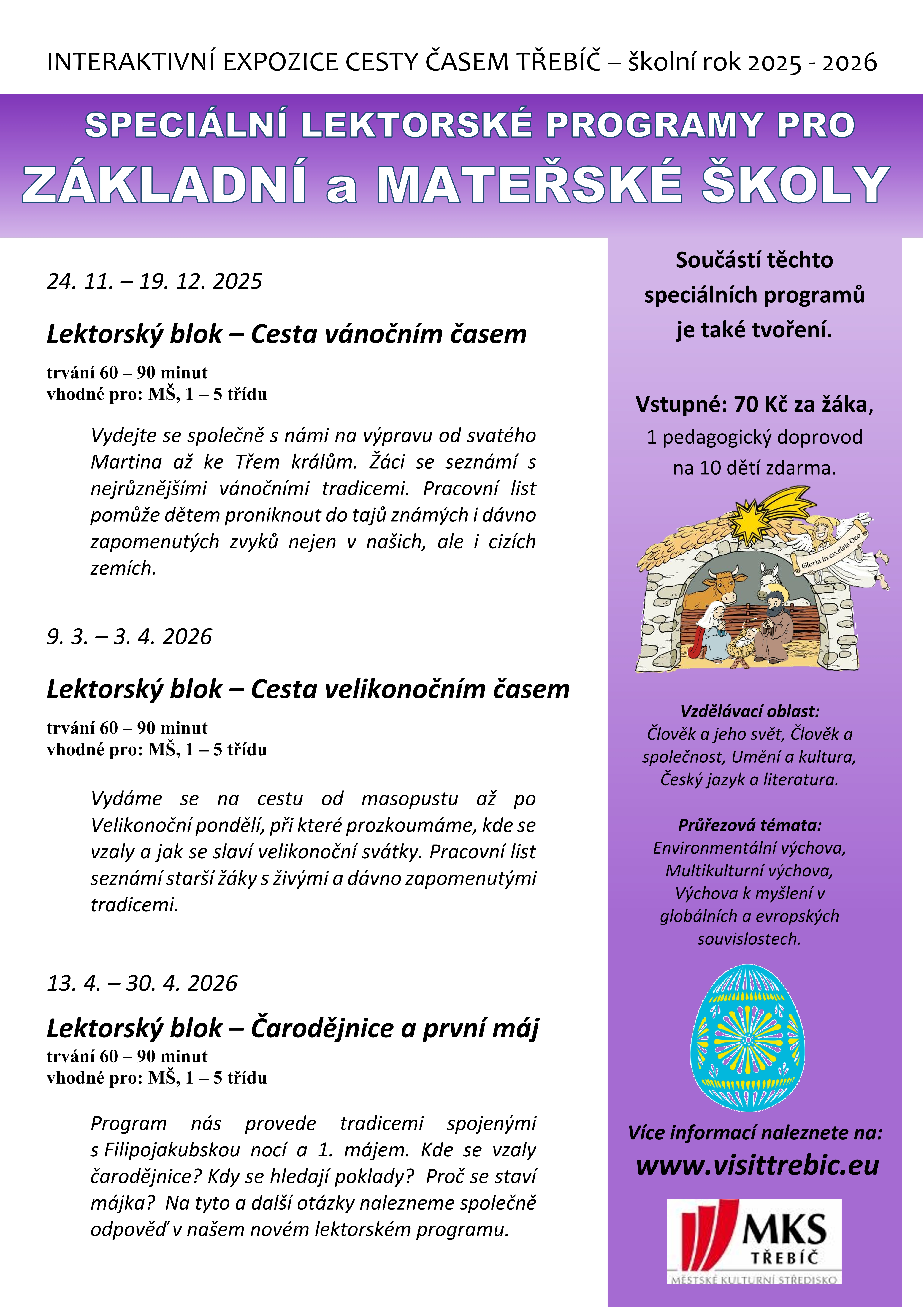 Návštěva památek v Třebíči není nuda ani pro nejmenší členy rodiny. Na třebíčském zámku v části Předzámčí je umístěna interaktivní expozice Cesty časem, která je určena přesně k tomu, co je jinde v expozicích zakázáno. Vstup přes informační centrum.