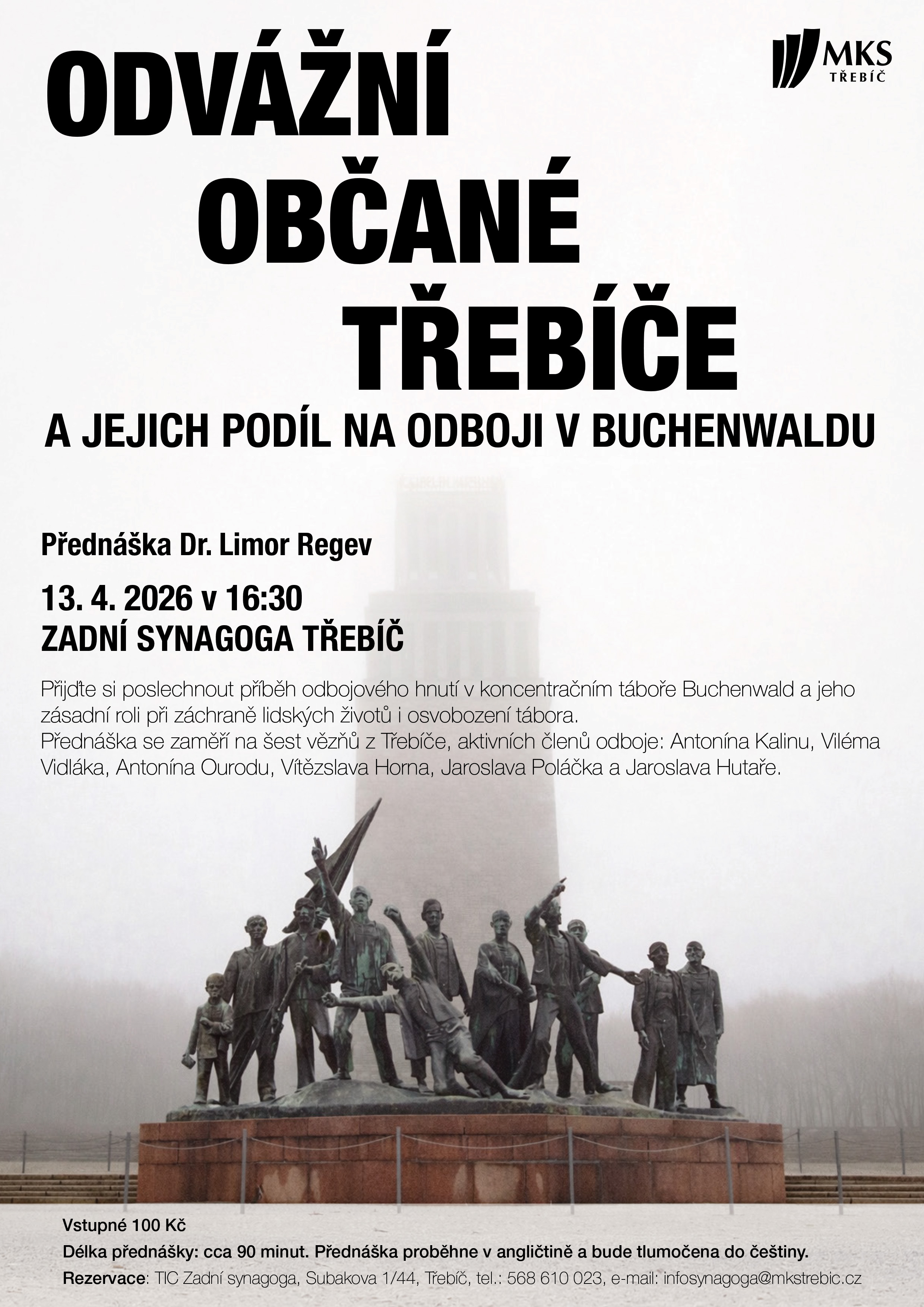 Zveme vás na mimořádnou přednášku profesorky Limor Regev, odbornice na moderní dějiny a mezinárodní vztahy, která připomene silné a inspirativní příběhy třebíčských občanů zapojených do odboje v koncentračním táboře Buchenwald v prostorách Zadní synagogy.