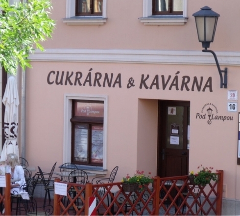 Cukrárna a kavárna Pod Lampou je nekuřácká a bezbariérová nejen pro maminky s dětmi. Nachází se na okraji židovské čtvrti.