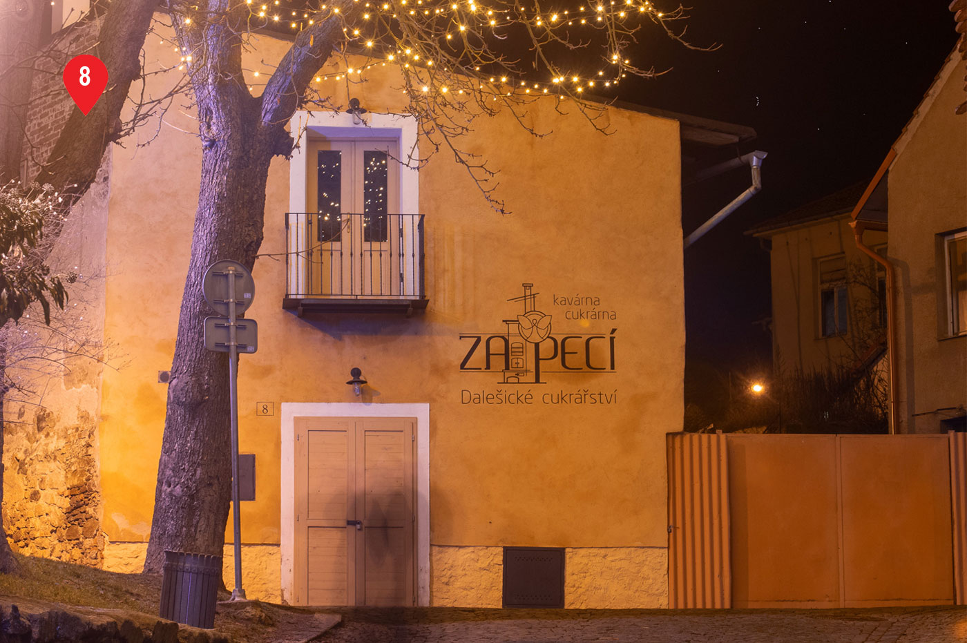 Ze zahrádky se vydejte dolů směrem k Žerotínovu náměstí a na chvíli se na cestě zastavte a dopřejte si odpočinek. Doporučujeme navštívit kavárnu za Pecí (8), která vás přivítá příjemným prostředím a bohatým výběrem cukrářských specialit. Můžete si zde vychutnat nějakou dobrotu na zub, nebo si vybrat z nabídky horkých nápojů, které vás příjemně zahřejí. Tato krátká zastávka je ideální pro načerpání sil.