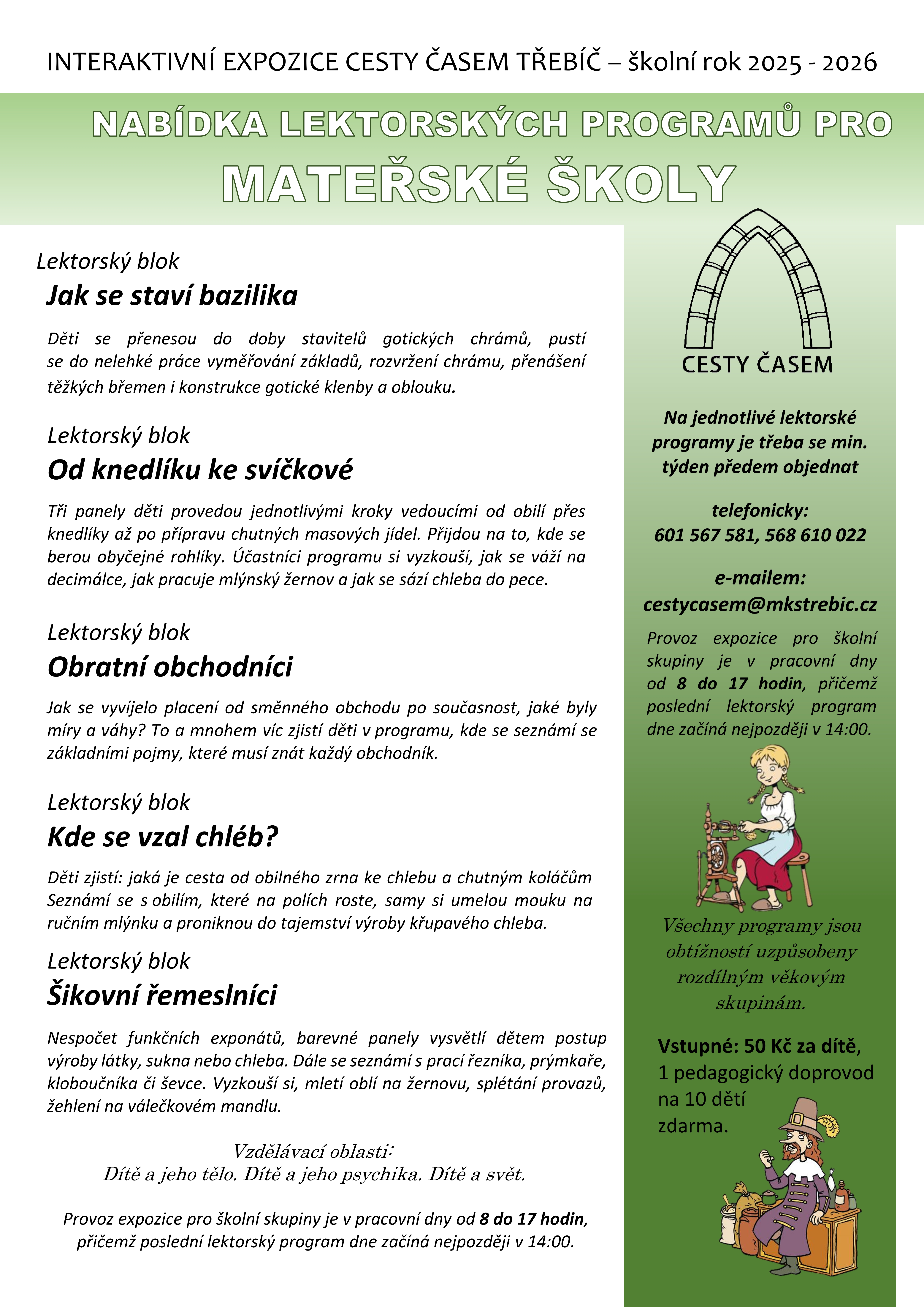 Expozice je interaktivní, to znamená, že si můžete ledacos vyzkoušet. Nejdříve nahlédnete pod pokličku mistrům středověkého stavitelství a vyzkoušíte si jejich práci. Umíte ovládat středověký jeřáb? Přemístíte se do středověké Třebíče, kde zjistíte, jak se zakládalo město, kdo seděl na radnici a co obnášela městská práva. Město Třebíč pak poskládáte jak puzzle podle proměn v průběhu staletí. Stane se z vás tovaryš a zaučíte se v tradičních řemeslech.