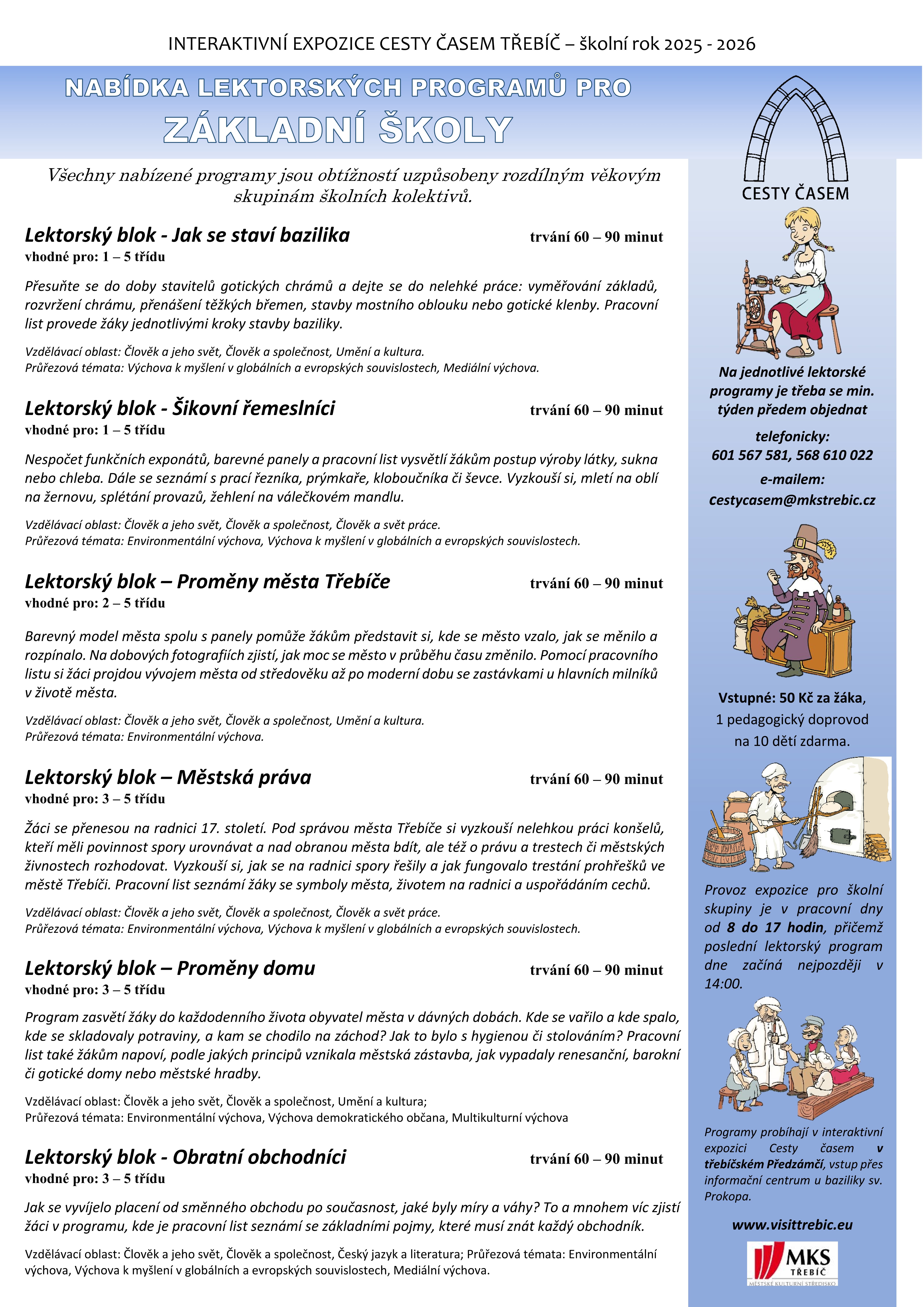Návštěva památek v Třebíči není nuda ani pro nejmenší členy rodiny. Na třebíčském zámku v části Předzámčí je umístěna interaktivní expozice Cesty časem, která je určena přesně k tomu, co je jinde v expozicích zakázáno. Vstup přes informační centrum.