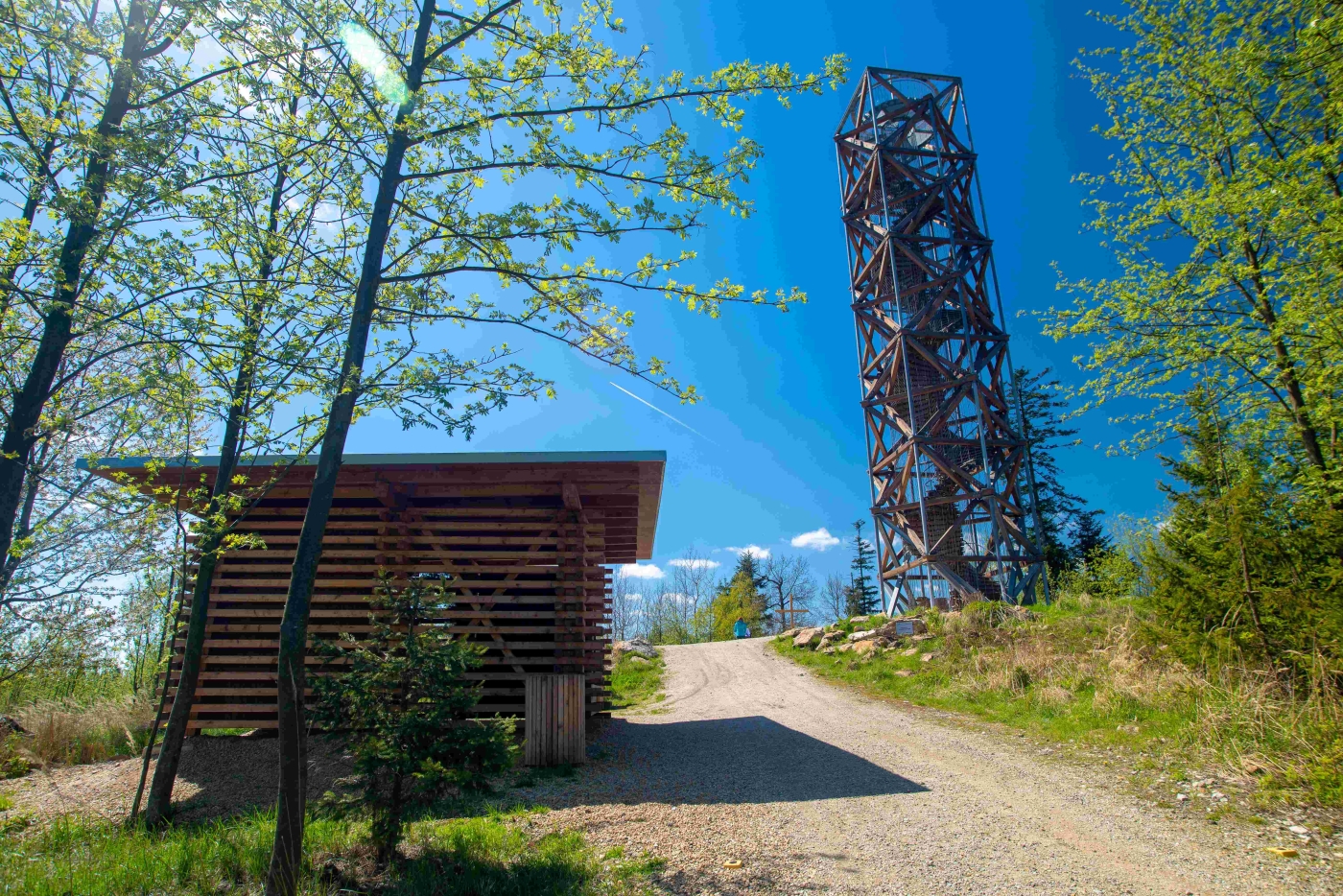 Design rozhledny není náhodný. Odkazuje nejen na propojení s bazilikou, ale také na židovskou kulturu – z výšky je vidět, že tyto trámy tvoří židovskou hvězdu. Základní půdorys rozhledny tvaru šesticípé Davidovy hvězdy symbolizuje harmonii. V okolí rozhledny najdete místo pro odpočinek, ať už pod dřevěným přístřeškem nebo na lavičkách, kde si můžete v klidu užít okolní přírodu. Na Pekelný kopec se vydejte pěšky nebo na kole. Navede vás místní značení. Auto můžete nechat na parkovišti u Polikliniky Vltavínská.