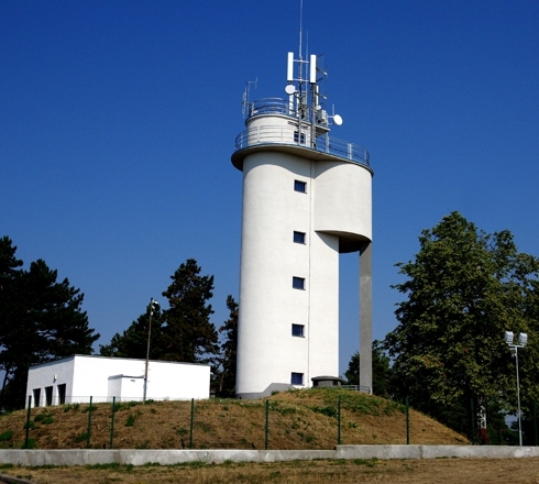 Das Bauwerk aus Stahlbeton steht über der Stadt 480 m ü. d. M. auf dem Hügel Strážná hora (Wachberg) bei einer Kapelle. Im Volksmund wird der Hügel Kostelíček (zu Deutsch Kirchlein) genannt. Der Bau wurde 1936 begonnen.